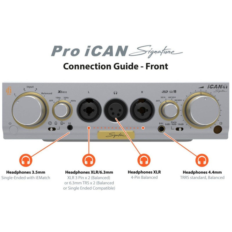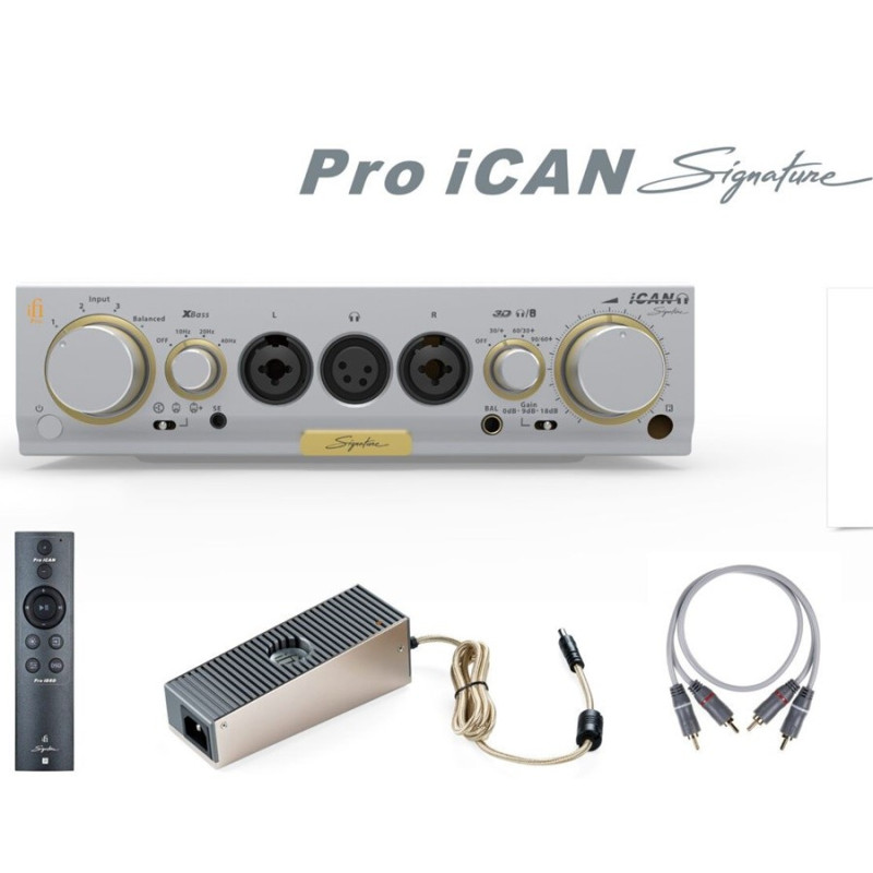 iFi Pro iCAN Signature Amplificador de auriculares con salidas 3.5mm, 6.3mm, 3XLR x2, 4XLR Balanceada y 4.4mm Balanceada | Muy potente | Sección a válvulas | Ganancia ajustable | Entradas analógicas RCA y XLR | Incluye mando a distancia y fuente de alimentación iPower Elite