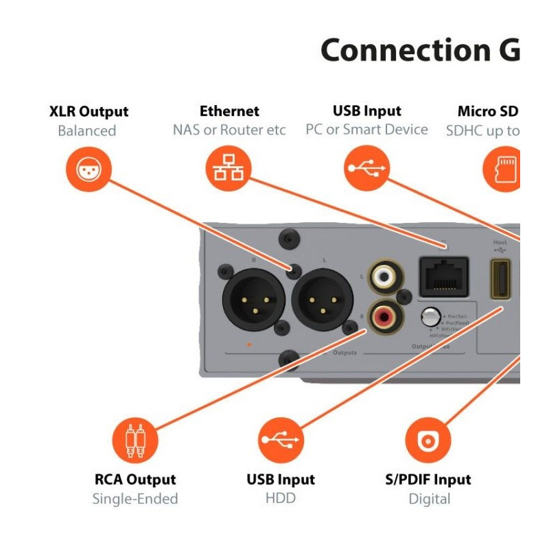 Utilice el Pro iDSD Signature como una unidad independiente, un DAC/preamplificador, un streamer de red y un amplificador de auriculares.