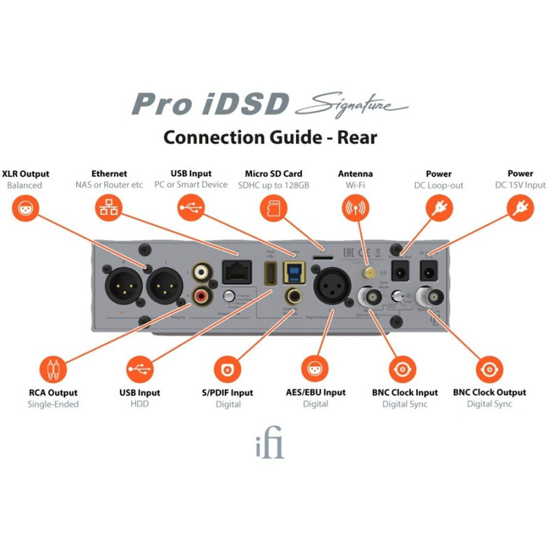 Con la reproducción WiFi/en red LINKPLAY™, Spotify y Tidal integrados, y la amplia compatibilidad de protocolos para 32-Bit/192kHz y DSD64, el Pro iDSD Signature también puede utilizarse sin ordenador para transmitir audio directamente.