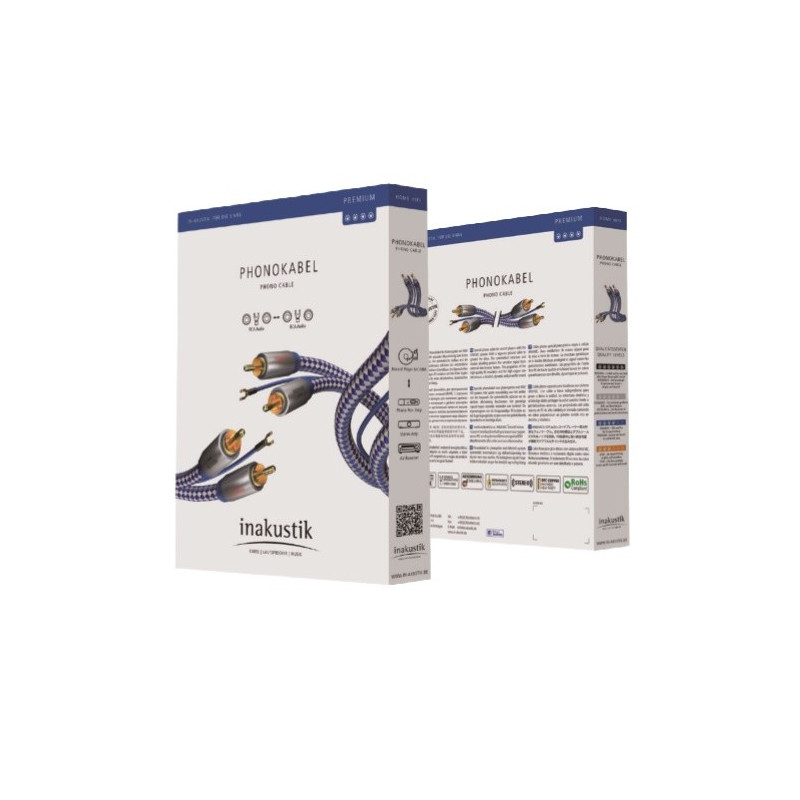 Inakustik Premium Phono Cable para giradiscos con toma de tierra separada | Doble apantallamiento | Sólidos conectores RCA metálicos y terminales bañados en oro 24c | Construcción simétrica, conductores realizados en cobre OFC de alta pureza | Diámetro del cable de 6mm