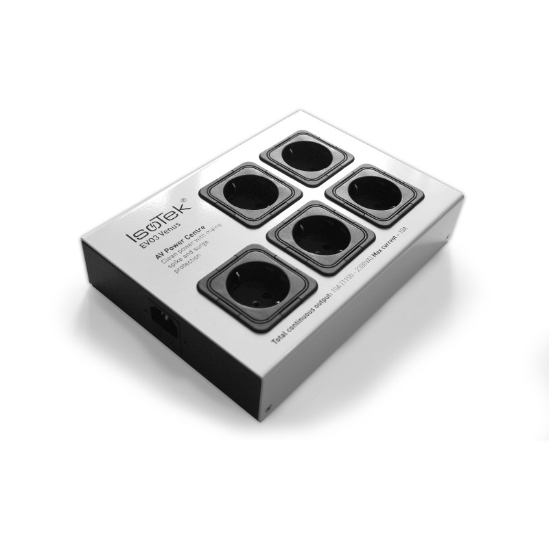 La IsoTek EVO3 Venus es una vistosa y sofisticada regleta de corriente que ha sido diseñada para integrarse a la perfección en los equipos audiovisuales “lifestyle” más exigentes del momento. Una particularidad que se plasma en unas dimensiones bellamente proporcionadas y compactas que permiten ubicar a la nueva regleta de corriente de IsoTek debajo de estanterías o incluso fijarla directamente a la pared que hay detrás de los recintos de los componentes del equipo. Desde el punto de vista técnico, la EVO3 Venus es un producto muy avanzado que se beneficia de las reconocidas ventajas del exclusivo circuito Polaris de IsoTek que, en este caso, ha sido recalibrado para ofrecer una solución “lifestyle” altamente efectiva, con el fin de mejorar de manera sensible las prestaciones de cualquier sistema de audio. El resultado es una regleta de corriente que, por un precio muy competitivo, “limpia” de manera significativa la señal alterna procedente de la red eléctrica (30 dB menos en el caso de las molestas interferencias de radiofrecuencia), a la vez que proporciona una protección de alto nivel frente a picos de corriente y descargas.