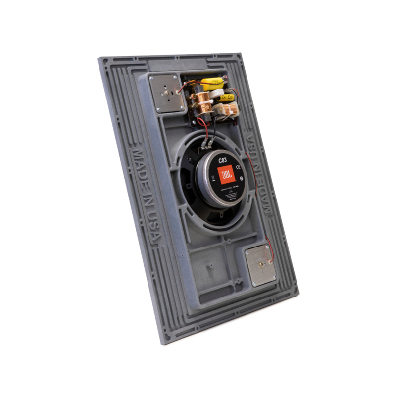 El modelo intermedio de la gama Conceal de JBL es una caja acústica ”invisible” de muy altas prestaciones con recinto hermético para instalaciones a medida. Se basa en un diseño de panel único con un marco de alta rigidez que alberga los altavoces y los componentes habituales en una caja acústica convencional empotrable en pared o techo. Dicho marco se fija directamente a la estructura de la pared/techo, mientras que la parte frontal de la caja acústica (un panel FidelityGlass exclusivo de JBL cuyo fundamento es un bafle moldeado por compresión) incorpora una superficie de gran suavidad y robustez que ha sido diseñada para ser terminada de un modo similar al entorno que la rodea. En lo que respecta a su configuración acústica, la Conceal utiliza una estudiada combinación de transductores que trabajan en tándem con el panel acústico FidelityGlass, concretamente un tweeter, un altavoz de medios y un woofer de 203 mm de diámetro con caja posterior integrada para reproducir las frecuencias bajas. La combinación de estos altavoces diseñados a medida con un filtro divisor de frecuencias de muy alta calidad permite a la Conceal C83 exhibir una calidad sonora comparable a la de los mejores sistemas de altavoces empotrables tradicionales.
