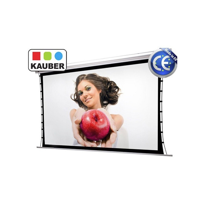 El diseño contemporáneo y la calidad de proyección de Kauber con el extra de calidad que ofrecen las pantallas tensionadas, permitiendo una proyección perfecta al realizarse sobre una superficie totalmente plana. Incluso en los tamaños de pantalla más grandes.