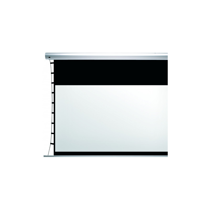 Kauber BLTBT169.300 Motorizada tensionada 290 x 163 cm área visible proyección - 131 pulgadas - Motor SOMFY. Tejido Clear Vision . Cajetín y barra inferior en color PLATA