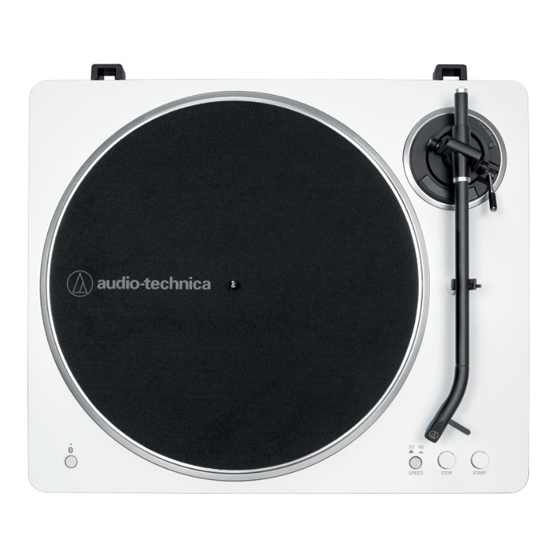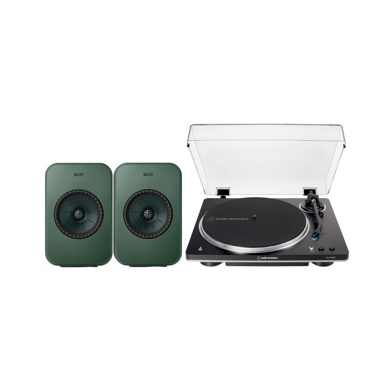 Conjunto formado por tocadiscos Audio Technica AT-LP70XBT y altavoces activos KEF LSX II LT
