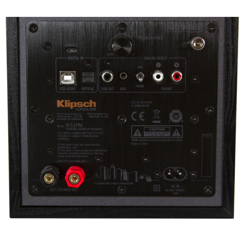 Klispch R-51PM Altavoces activos Bluetooth | 120 Watios | Entrada analógica RCA, digital USB y óptica, AUX, Phono/Línea | Mando a distancia