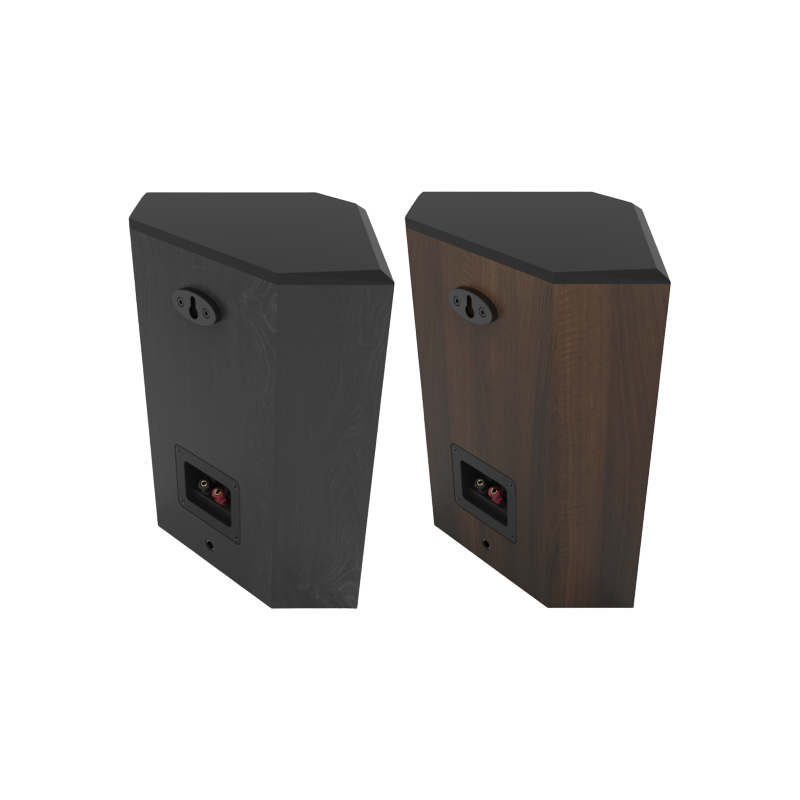 Los altavoces envolventes Klipsch RP-502S II también pueden utilizarse como altavoces de elevación o envolventes en la pared a través de su sistema de montaje en forma de ojo de cerradura fácil de usar, ofreciendo el ángulo perfecto para mejorar los efectos de sonido.