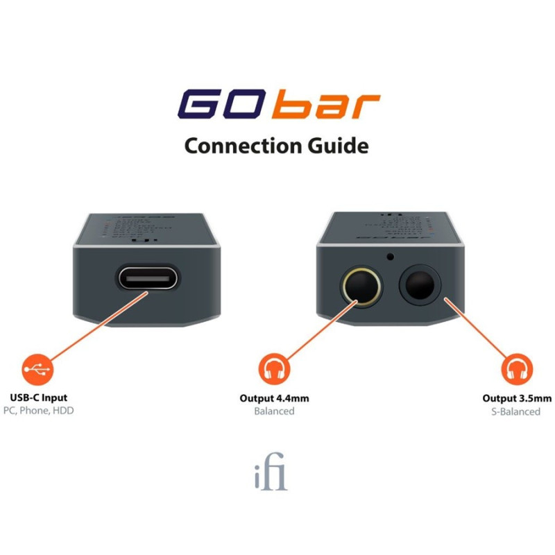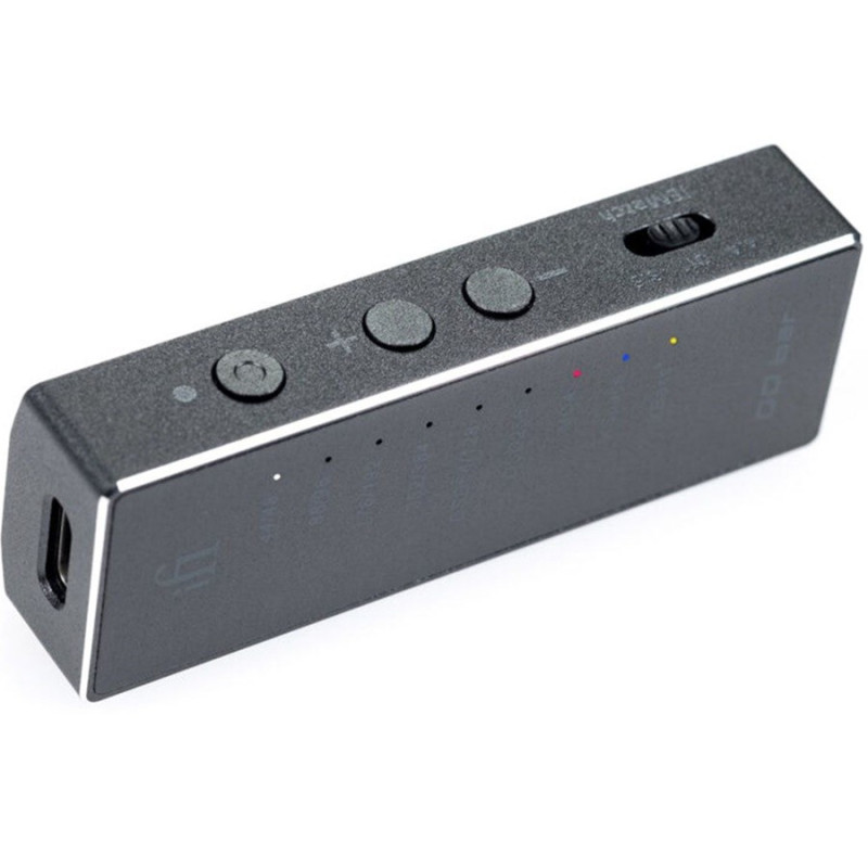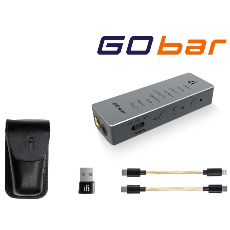 iFi GO Bar - Amplificador / DAC de auriculares portátil | Se puede utilizar tanto con ordenador como con teléfonos o tablets | Salida de audio MiniJack 3.5mm y Balanceada 4.4mm | Reproducción nativa hasta DSD256 | Descodificación MQA completa | Cuatro opciones de filtrado digital a medida | 475mW a 32 ohmios - 7,5 V a 600 ohmios.