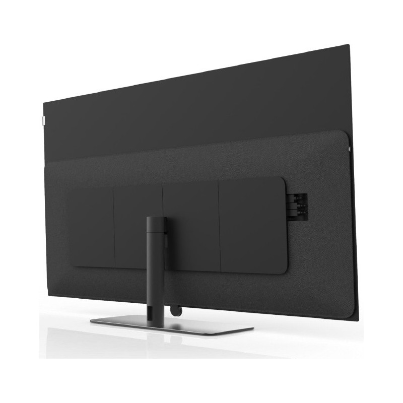 El nuevo Loewe bild i se suministra con el soporte de sobremesa Loewe i en el color gris basalto del sistema. Dicho soporte es giratorio y permite ocultar el cableado en el tubo.