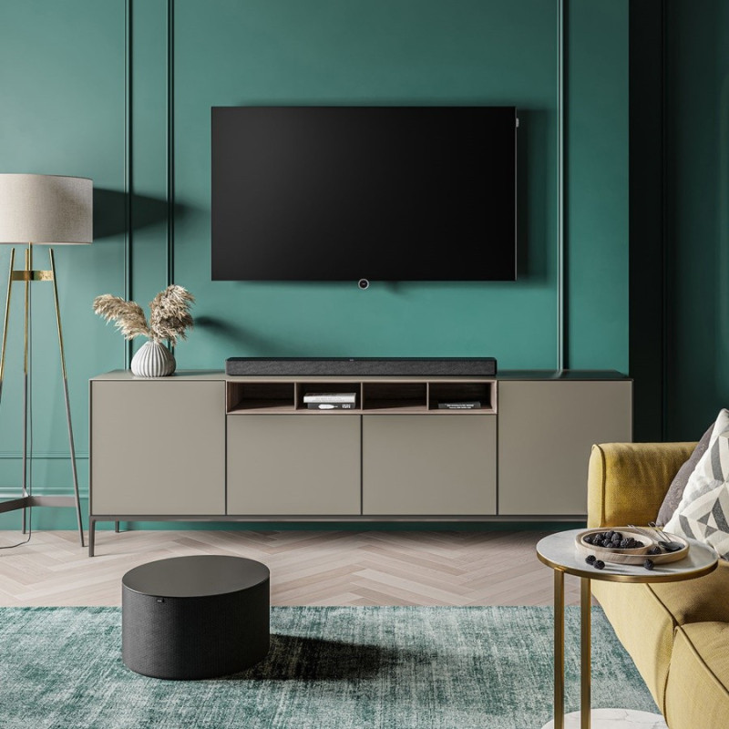 El cine en casa multicanal 5.1.2 de la barra klang bar 5 mr también puede ampliarse en pocos segundos gracias a la plataforma Loewe Multiroom, con la función multisala, conectando de forma inalámbrica los nuevos altavoces activos Loewe klang mr 1, mr 3 o mr 5.
