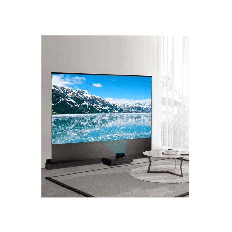 Equipada con la última tecnología ALR (Ambient Light Rejection), la pantalla de suelo motorizada pantalla de suelo motorizada EDEN le permite conseguir una gran pantalla de proyección pantalla de proyección en cualquier sala, con un moderno proyector de tiro ultracorto. Esta tecnología tecnología le proporciona un mejor contraste de imagen al reducir el reflejo de la la luz ambiental.
