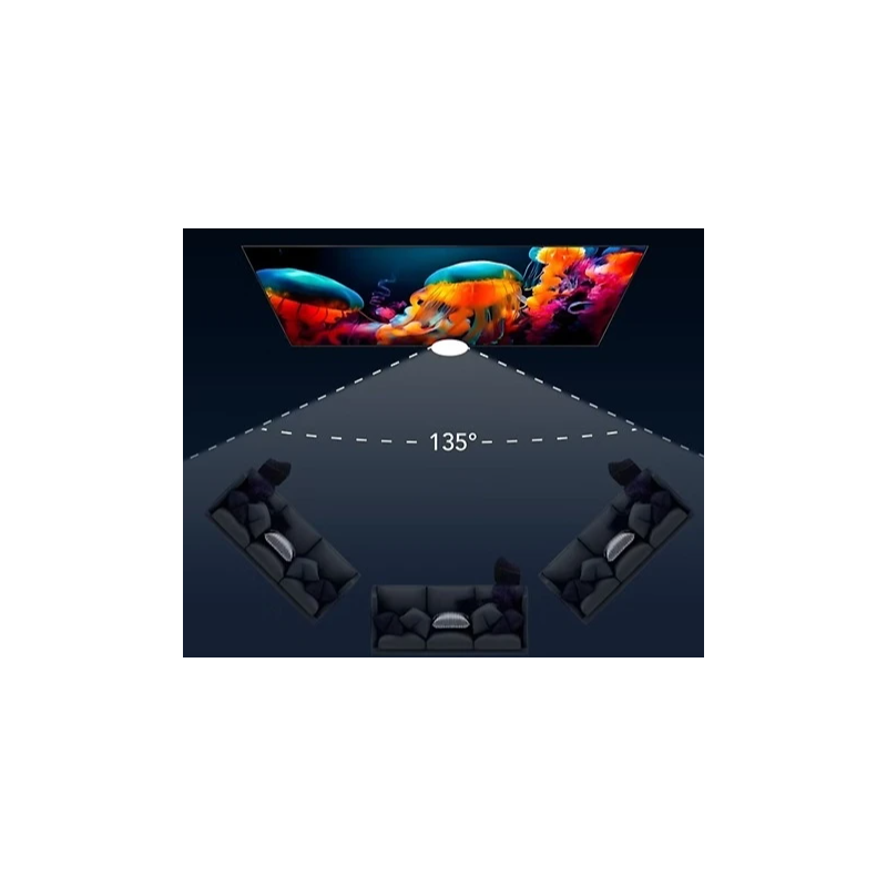 Uno de los principales puntos fuertes del Movie Palace Fresnel Ultra Slim 240 es su campo visual excepcionalmente amplio de 135°. Esta característica permite que varios espectadores disfruten simultáneamente de una experiencia visual de calidad, independientemente de su ubicación en la sala.