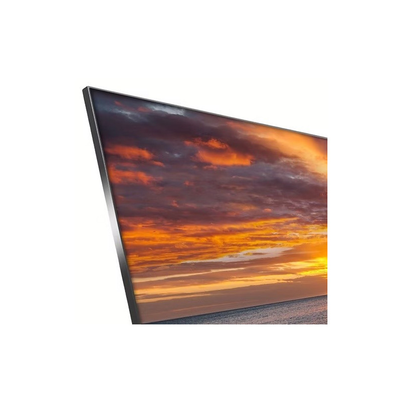 Con una profundidad total de solo 4 cm, esta pantalla puede colocarse fácilmente sobre un mueble de TV o fijarse directamente a la pared. Su diseño minimalista crea una proporción entre el tamaño total y el de la pantalla que genera un efecto visual impactante, sin bordes visibles. Con una relación pantalla/tela superior al 99%, las imágenes ocupan todo su esplendor, ofreciendo una presentación completa y vibrante.