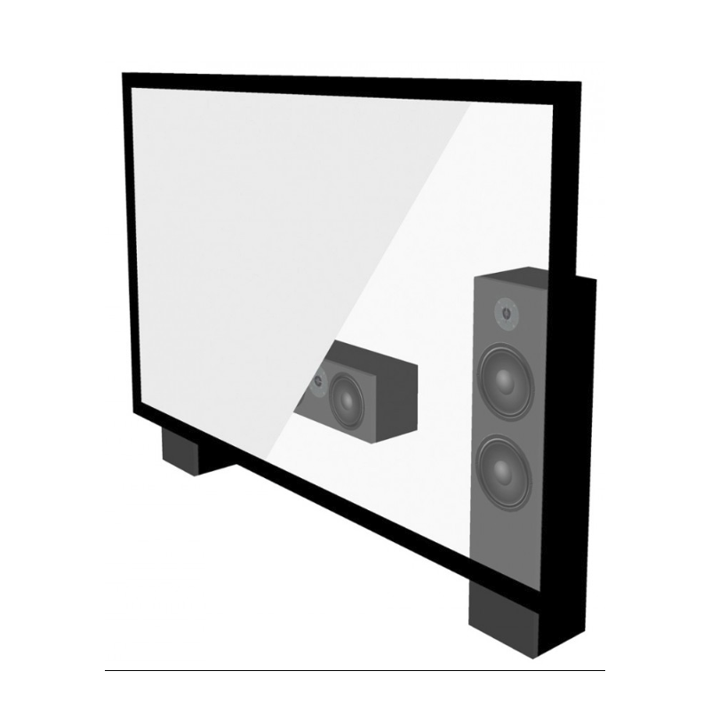 El tejido acústicamente transparente no es totalmente opaco, por lo que sugerimos que se coloque delante de un fondo oscuro. Los altavoces deberían instalarse de manera que los tweeters estén colocado en el eje central longitudinal de la pantalla (o ligeramente más arriba si hay varias filas de asientos).