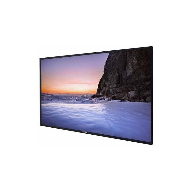 Pantalla fija sobre marco de aluminio, y tiene un tejido microestructurado de ALR que absorbe la luz ambiental mientras refleja el haz de luz del proyector. Ofrece un alto nivel de contraste y las mejores características de visión en un ambiente muy luminoso. El marco de aluminio recubierto ultraplano negro, asegura una tensión perfecta gracias a un sistema de cierre multipunto de la pantalla. Esta tecnología asegura una mejor distribución de las tensiones y garantiza por lo tanto, una superficie totalmente plana. El contorno realza el contraste de la imagen y evita los molestos reflejos. Se instala fácilmente gracias a su sistema de fijación por clip, rápido y fiable.