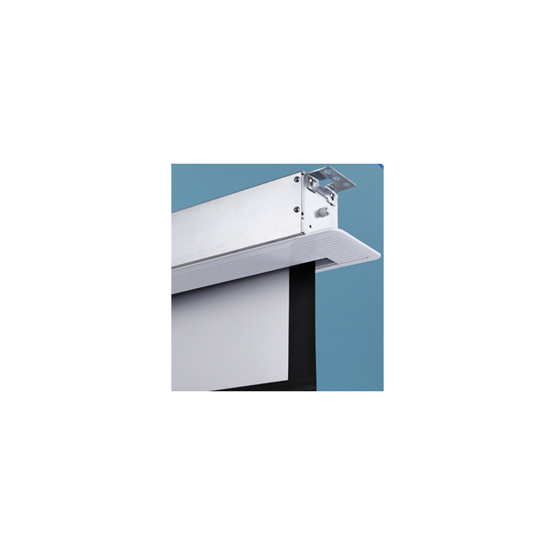 La carcasa de aluminio ligera y resistente incorpora el nuevo motor Lumene Silent, dos veces más silencioso y con un sistema de freno optimizado. Fácil de instalar, Lumene Showplace se empotra en el techo mediante un sistema de suspensión, lo que permite que el lienzo desaparezca por completo cuando está cerrado.