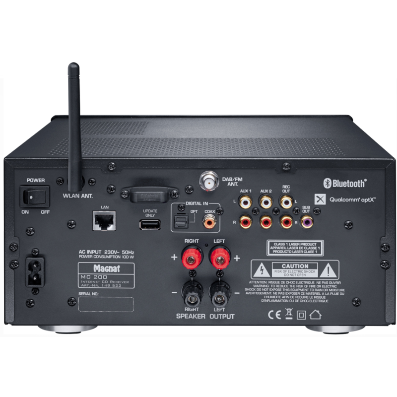 Magnat MC 200 Reproductor en Red Compacto | Amplificador y convertidor digital-analógico en calidad Hi-Res certificada | Entradas digitales, analógicas adicionales y salida de subwoofer | Unidad de CD alta calidad y sintonizador DAB+/FM