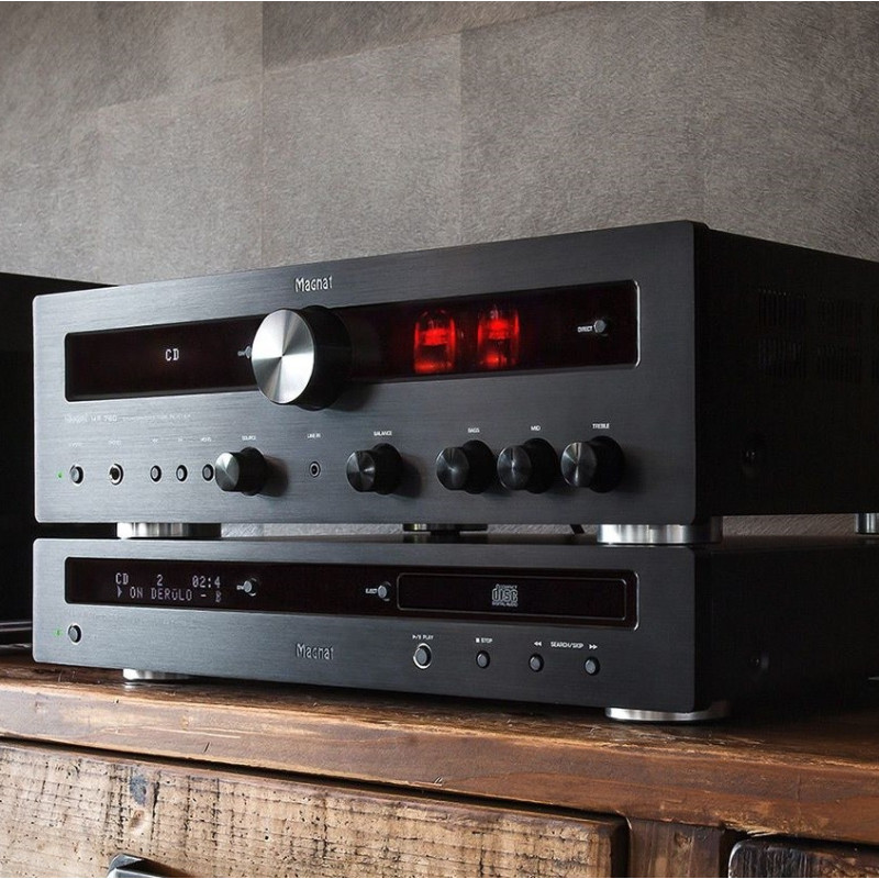 El MR 750 brinda la combinación definitiva de tecnología de tubos y transistores a todos los medios imaginables. Por fin tenemos una solución integral para los aficionados a los componentes de tamaño clásico 43 que puede combinarse perfectamente con los componentes de alta fidelidad de Magnat.
