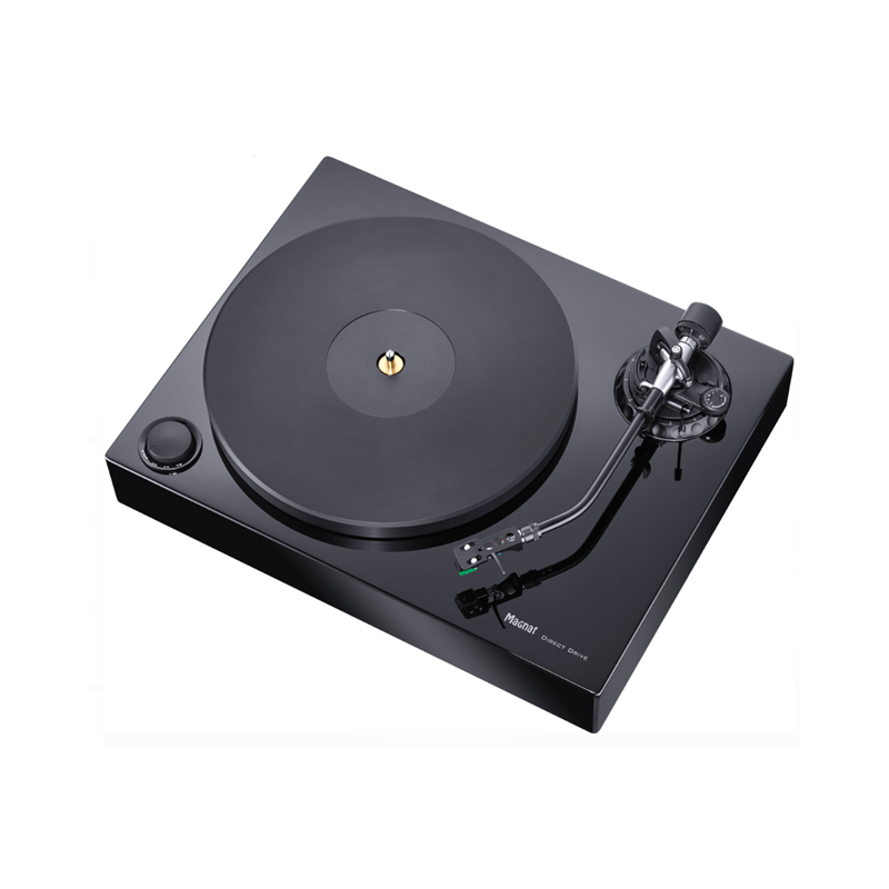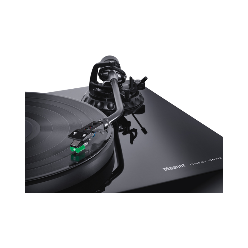 Magnat MTT 990 tocadiscos Direct-Drive audiófilo | Brazo de aluminio en J de 10 pulgadas | Selección de velocidad con botón: 33 1/3, 45, 78 rpm | Audio Technica AT95E con aguja elíptica | Zócalo de MDF sólido | Salidas de audio RCA chapadas en oro
