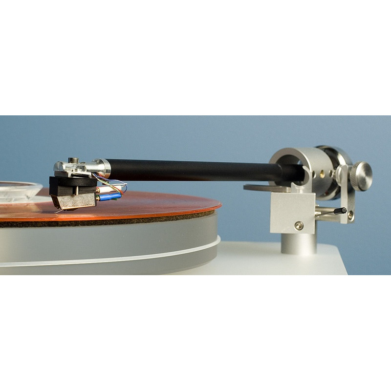 Este giradiscos también incluye una fantástica capsula de imán móvil con cuerpo de madera de Ebano, el brazo de baja resonancia esta construido en aluminio y fibra de carbono, el plato de material acrílico gira sobre un cojinete cerámico de precisión y es arrastrado por un motor, alejado de la capsula, con un nivel de giro constante y de precisión.