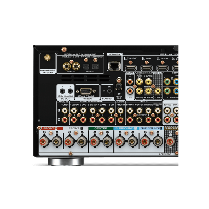 Soporta subwoofers duales para una respuesta de bajos uniforme y de baja frecuencia dentro de su entorno de escucha. Disfrute de unos bajos precisos sin picos ni caídas audibles, independientemente de dónde coloque el subwoofer. Los subwoofers conectados se pueden calibrar de forma independiente gracias a la tecnología Sub EQ HT de Audyssey para obtener un rendimiento de graves más fluido y adaptado a cualquier habitación.