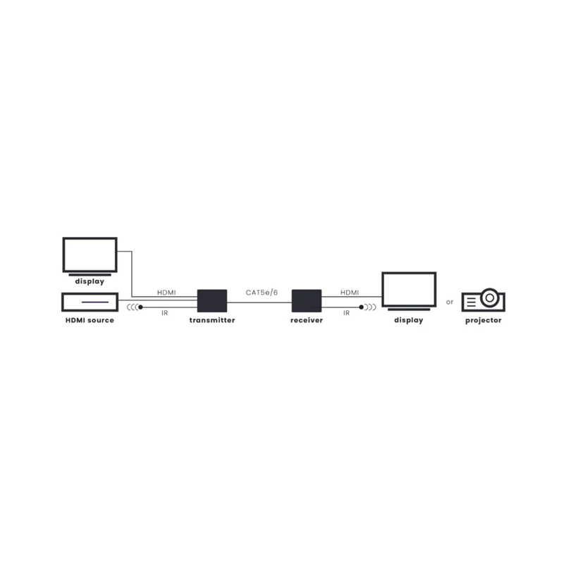 - Transmite una señal de vídeo 4K hasta 120 metros de distancia a través de un cable único CAT5e/6.