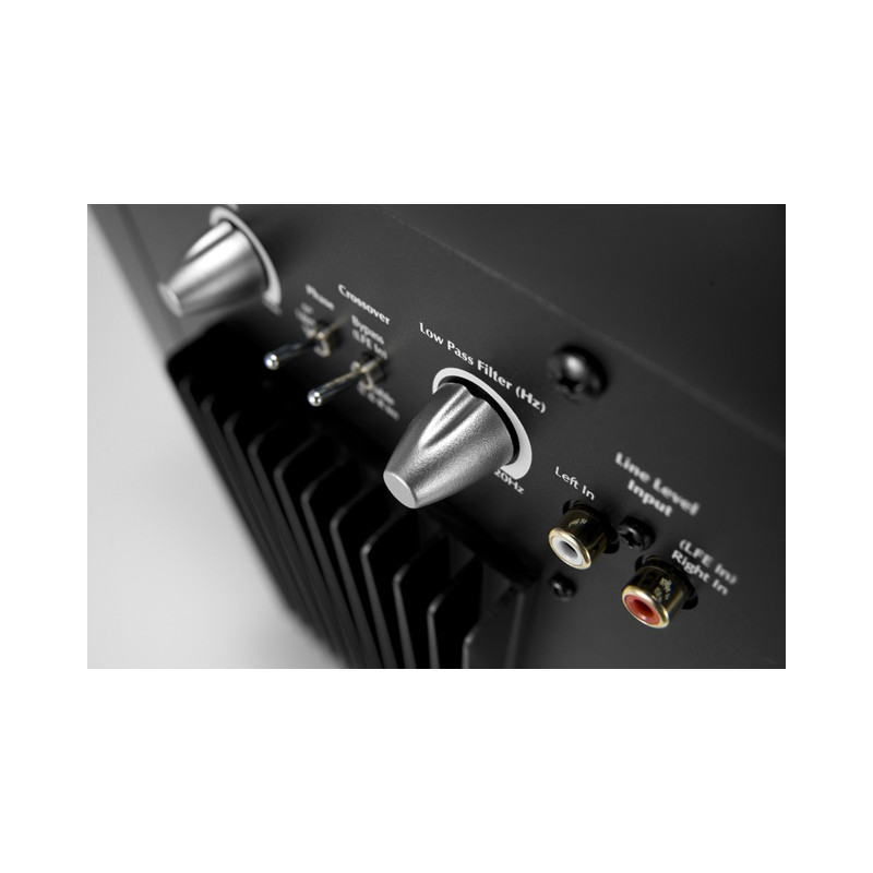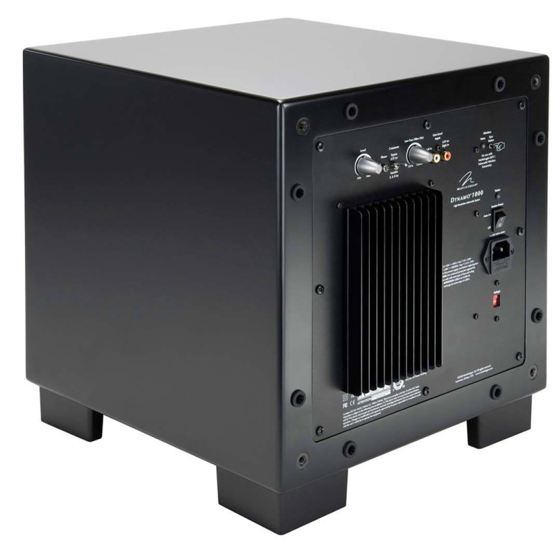 Subwoofer Martin Logan Dynamo 1000W con posibilidad de usarlo de manera inalámbrica gracias al transmisor que viene incluido de serie o bien de manera convencional con cable.