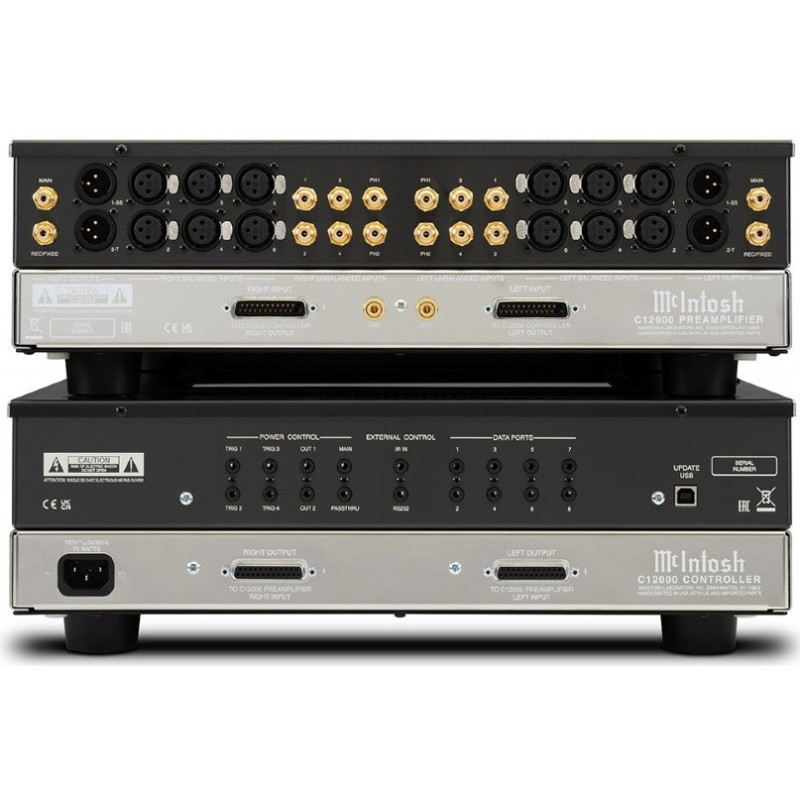 McIntosh C12000 Preamplificador Híbrido (12AX7A, 12AT7) | Entradas: 4x RCA, 6x XLR, 2x phono MM/MC configurable | Salidas: 2x XLR variable