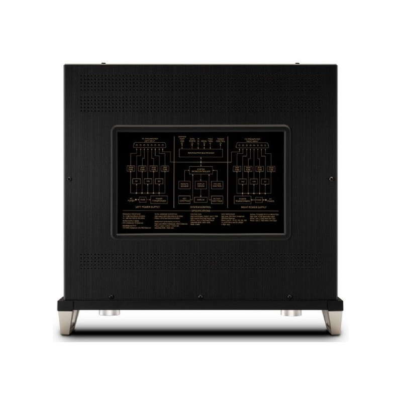Con los clásicos paneles frontales de cristal negro de McIntosh, los medidores azules, los mandos, el chasis de acero inoxidable, los logotipos iluminados y las asas de aluminio cepillado mecanizadas a medida, el C12000 constituye una declaración visual además de su destreza sonora. Se pEspecificaciones