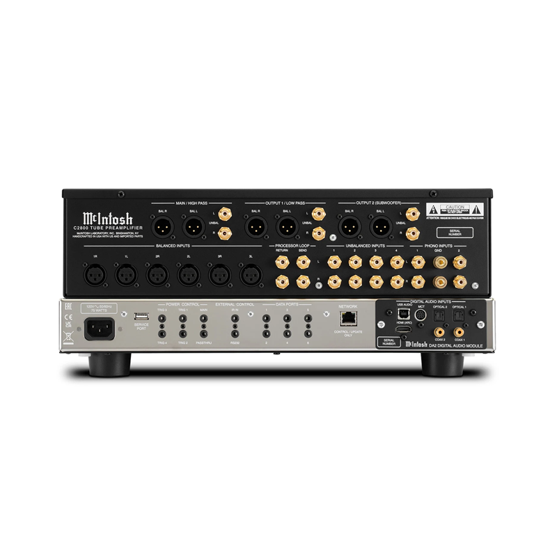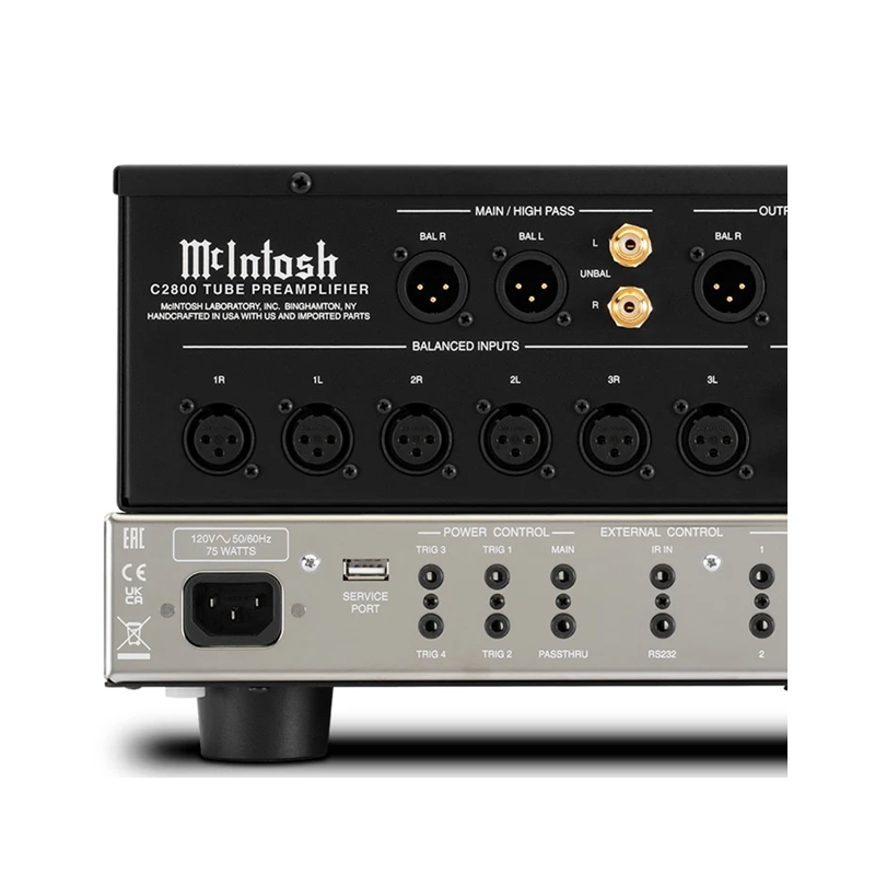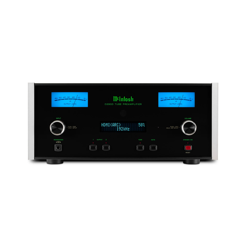 McIntosh C2800 C2800 Preamplificador de válvulas de vacío de 2 canales | 16 entradas: 7 analógicas, 2 phono, 7 digitales | 4 tubos de vacío: 3x 12AX7A y 1x 12AT7 | Salida de subwoofer dedicada | Controlable mediante la aplicación McIntosh Connect | Incluye bucle procesador | Admite archivos de 24 bits/192 kHz y DSD512 | Probado en Roon | 3 años de garantía limitada