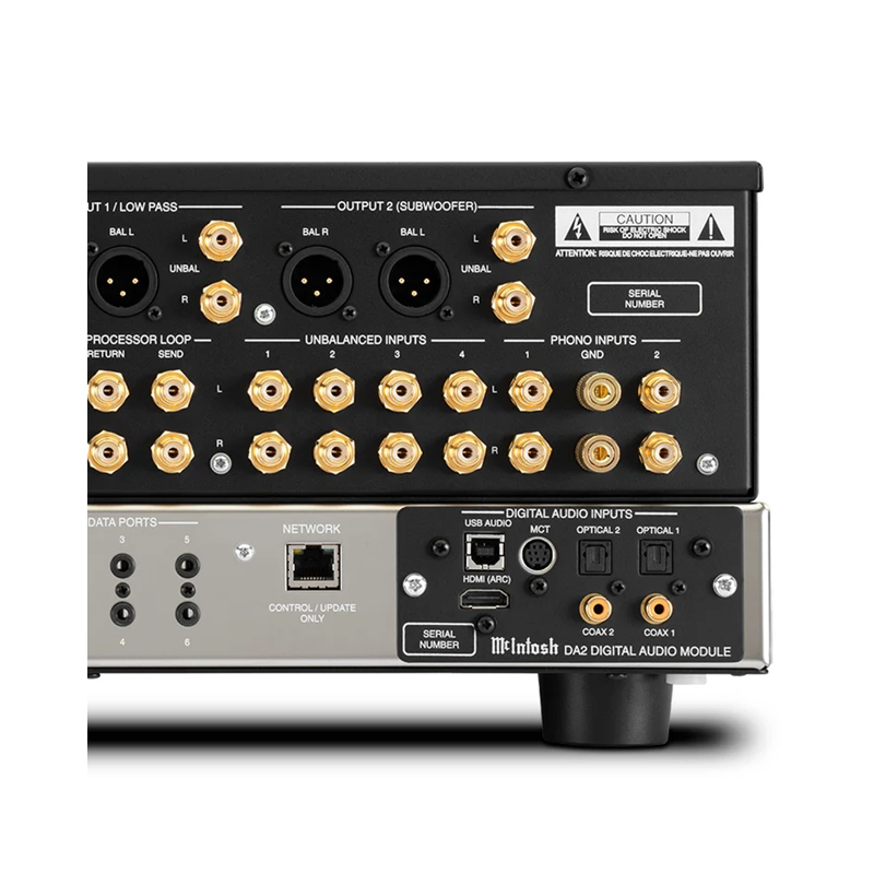 Nuestro módulo de audio digital DA2 aloja las 7 entradas digitales y está alimentado por un convertidor digital-analógico (DAC) cuádruple balanceado de 8 canales y 32 bits de calidad audiófila. El DA2 ofrece una gran variedad de entradas, incluida una entrada HDMI de canal de retorno de audio (ARC)1 que dará nueva vida al sonido de su televisor cuando lo reproduzca a través de su sistema estéreo doméstico. Los formatos de audio multicanal de Dolby® y DTS® se convertirán de forma experta en audio de dos canales para disfrutar de una experiencia auditiva apasionante.