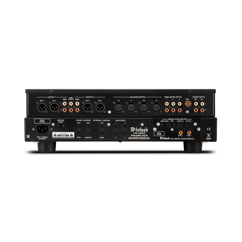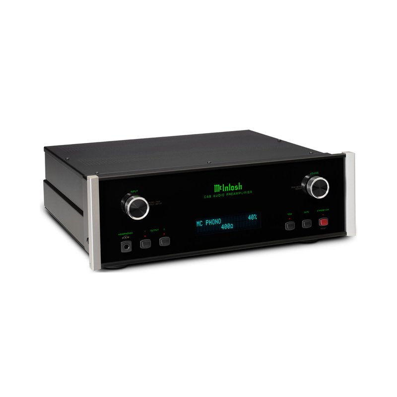 McIntosh C49 Preamplificador en estado sólido 2 canales | Entrada: 3x RCA, 2x XLR, phono MM, phono MC, 2x digital coaxial, 2x digital óptica, USB | Salidas: 2x XLR variable, 2x RCA variable, RCA fija, Auriculares | DA1 digital audio | Admite archivos DSD256