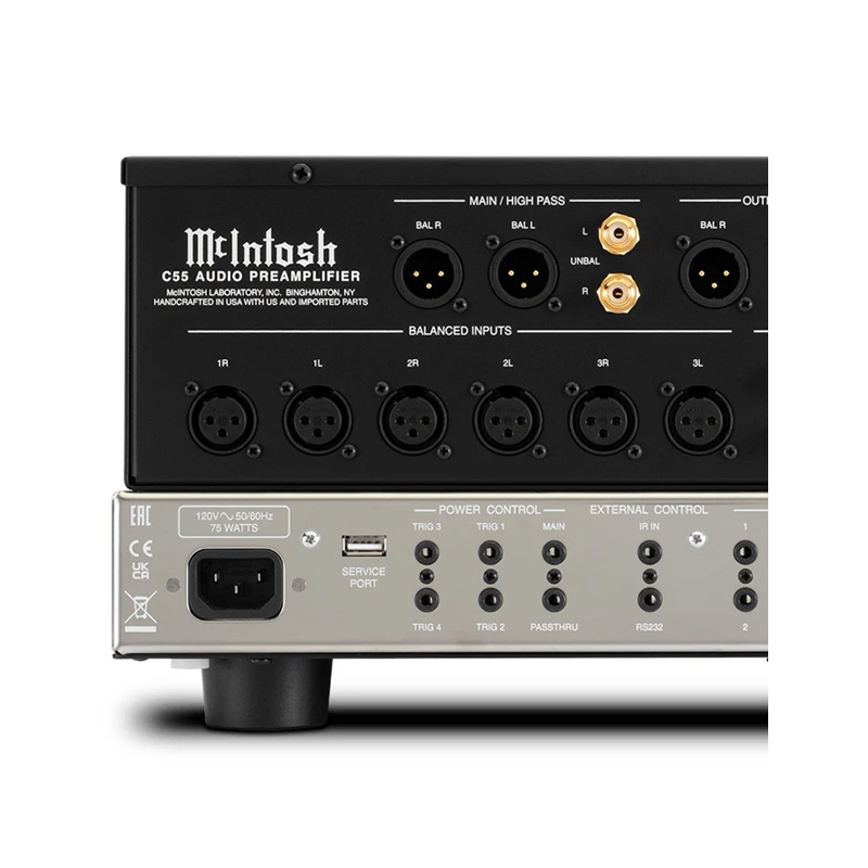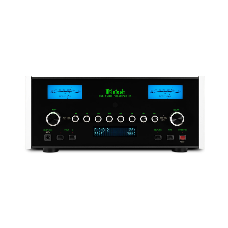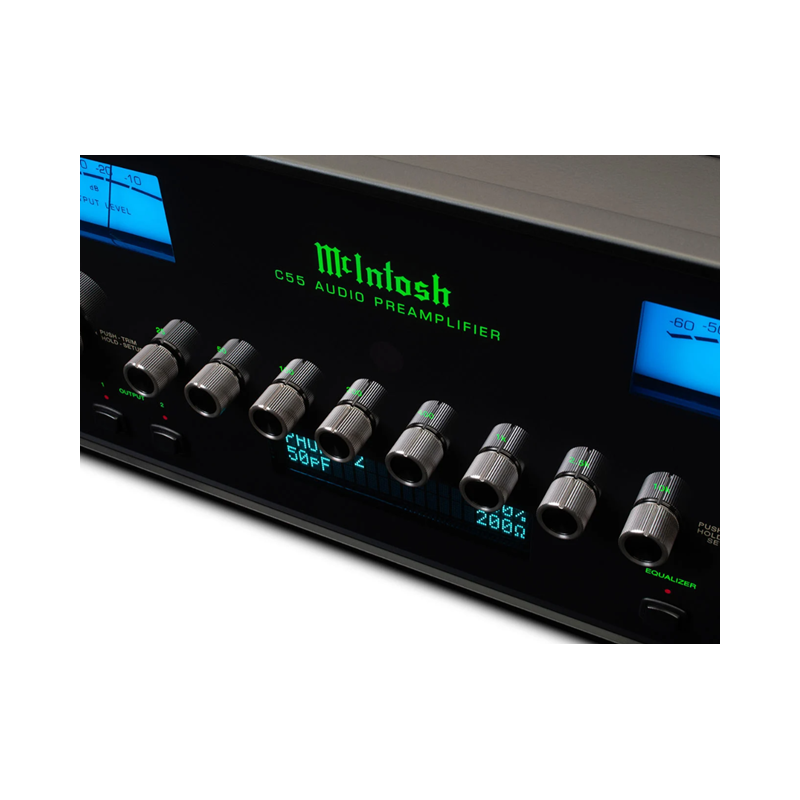 McIntosh C55 Preamplificador de estado sólido de 2 canales | 16 entradas: 7 analógicas, 2 phono, 7 digitales | Salida de subwoofer dedicada | Controlable mediante la aplicación McIntosh Connect | Incluye bucle procesador y ecualizador analógico de 8 bandas | Admite archivos de 24 bits/192 kHz y DSD512 | Probado en Roon | 3 años de garantía limitada