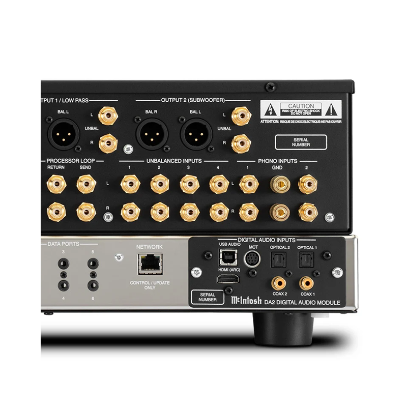 La sección digital se encuentra en nuestro módulo de audio digital DA2 y está alimentada por un convertidor digital-analógico (DAC) de 32 bits, 8 canales, cuádruple balanceado y de calidad audiófila. El DA2 ofrece una gran variedad de conexiones, incluida una entrada HDMI Audio Return Channel (ARC)1 exclusiva para audio, que lleva el sonido del televisor a una nueva era a través del sistema estéreo doméstico. Los formatos de audio multicanal Dolby® y DTS® se convierten de forma experta en exquisito audio de dos canales para disfrutar de una experiencia auditiva cautivadora.