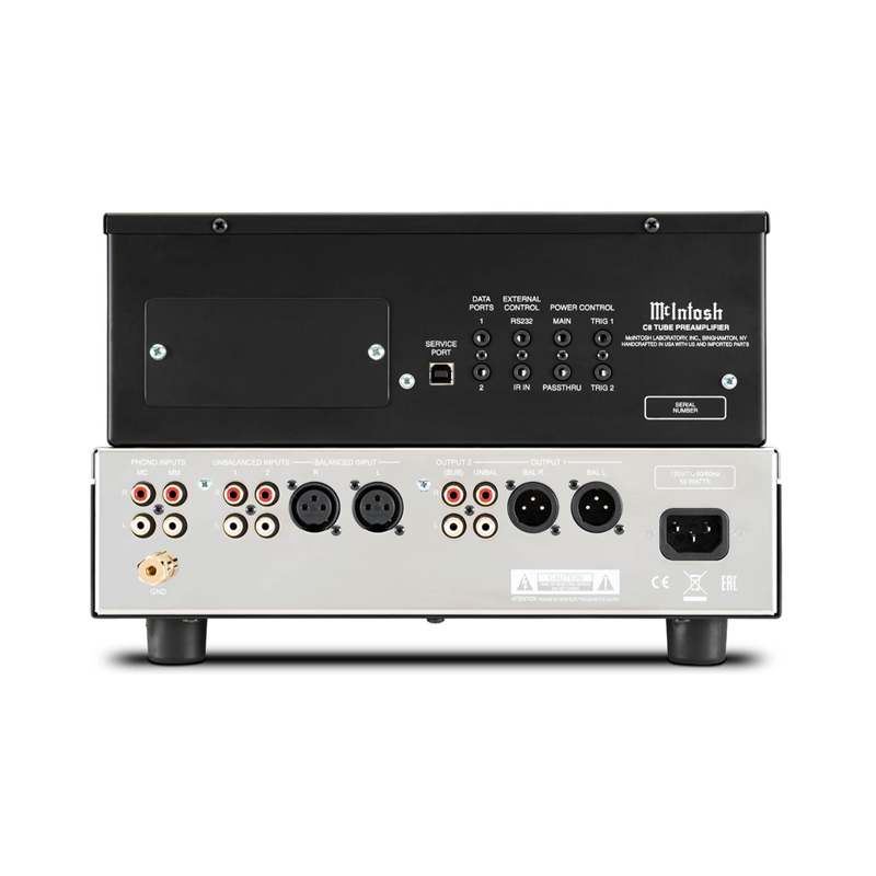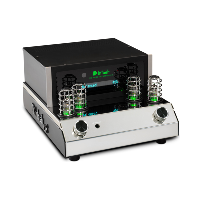 McIntosh C8 Previo de Válvulas de 2 canales | Válvulas: 4x 12AX7a | Entrada: 2x RCA, XLR, phono MM, Pphono MC | Salidas: XLR variable, 2x RCA variable | Amplificador de auriculares High Drive