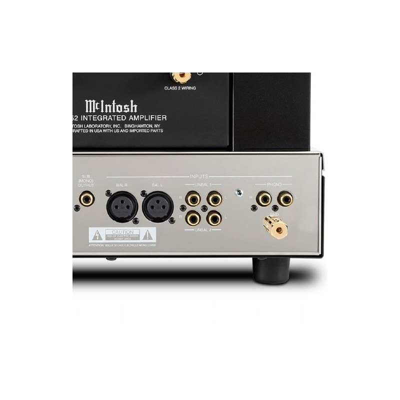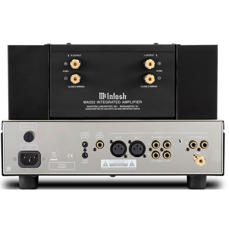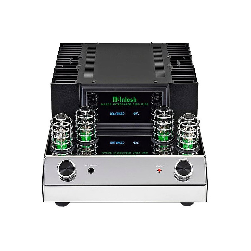 McIntosh MA252 amplificador integrado Híbrido 2 canales | 2x 100W a 8 ohmios, 2x 160W a 4 ohmios | Entradas: 2x RCA, 1x XLR, 1x Phono MM fija | Salidas: Sub y Auriculares | Diseño híbrido: preamplificador de válvulas de vacío y amplificador de potencia de estado sólido