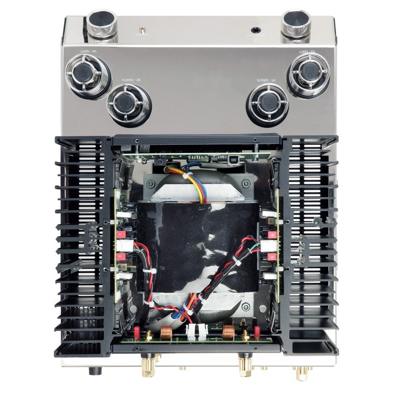 La etapa de preamplificación utiliza dos válvulas de vacío 12AX7a y dos 12AT7 alojadas dentro de elegantes jaulas protectoras; la etapa de salida es un amplificador de estado sólido de acoplamiento directo que proporciona 100 vatios por canal en altavoces de 8 ohmios o 160 vatios por canal en altavoces de 4 ohmios. Con un diseño totalmente analógico, dispone de 2 entradas no balanceadas, 1 balanceada y 1 entrada de fono de imán móvil para giradiscos. Las 4 entradas pueden tener nombres fáciles de usar para simplificar el control del usuario. Los controles de tono de graves y agudos ayudan a ajustar la música a las preferencias personales. Se incluye una salida de subwoofer de rango completo para utilizarla con un subwoofer motorizado para mejorar aún más las frecuencias bajas.