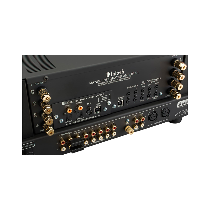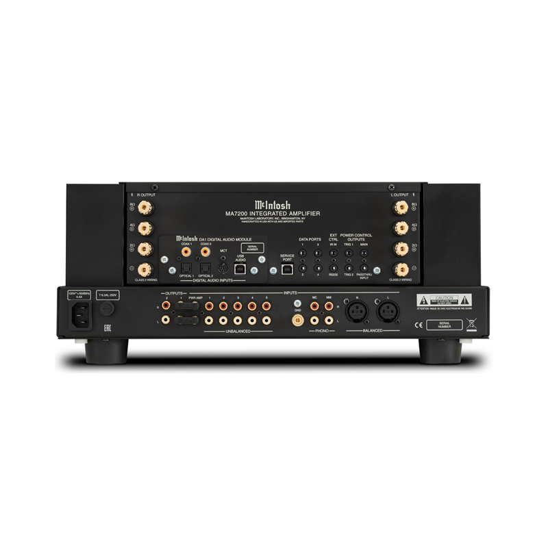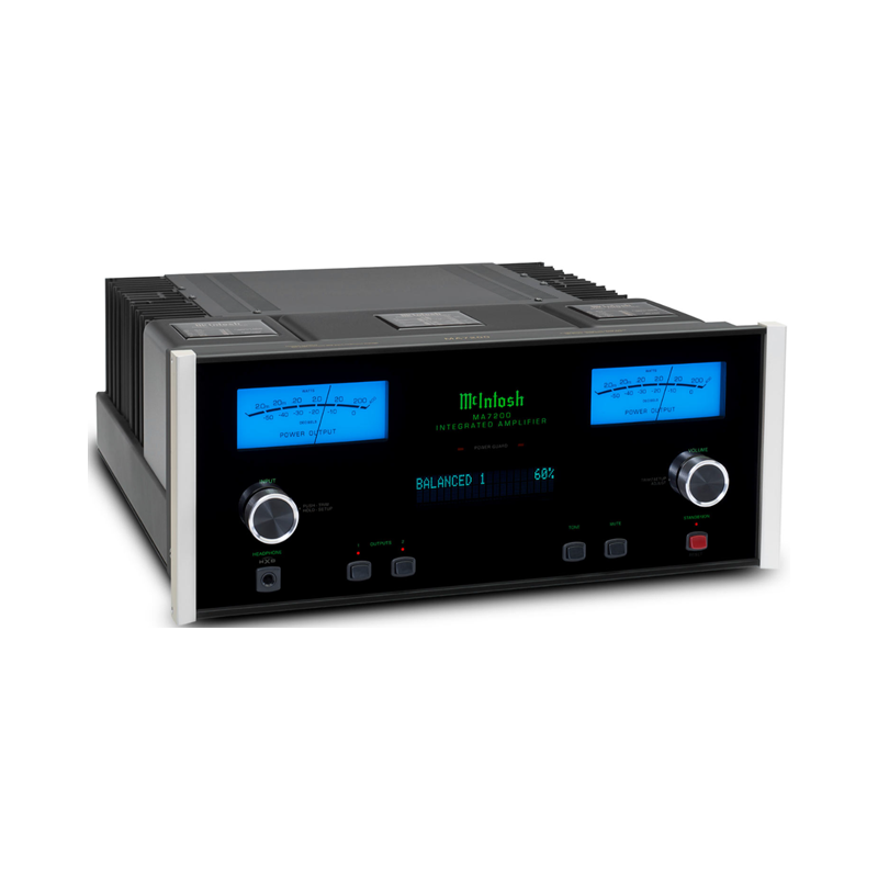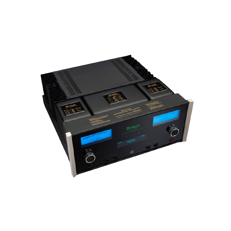 McIntosh MA7200 amplificador integrado 2 canales | 2x 200W a 8 ohmios | Entradas: 5x RCA, XLR, 1x Phono MM variable, 2x Óptica digital, 2x Coaxial Dig, USB | Salidas: 2x RCA variable y Auriculares | DAC 8-canales | HT PassThru