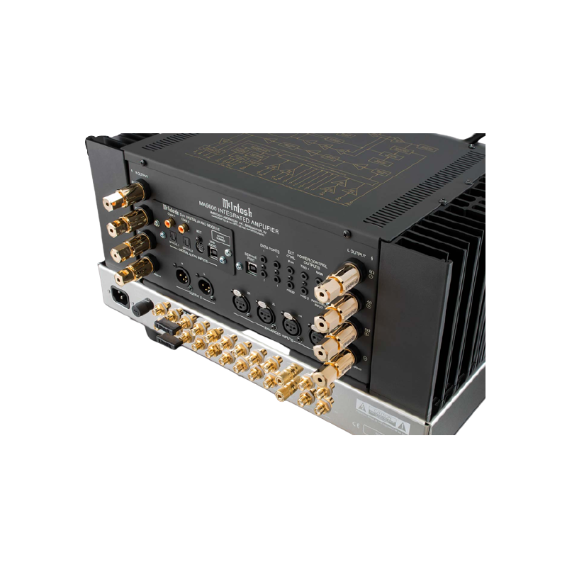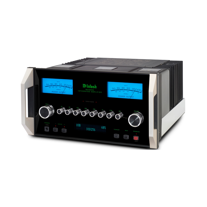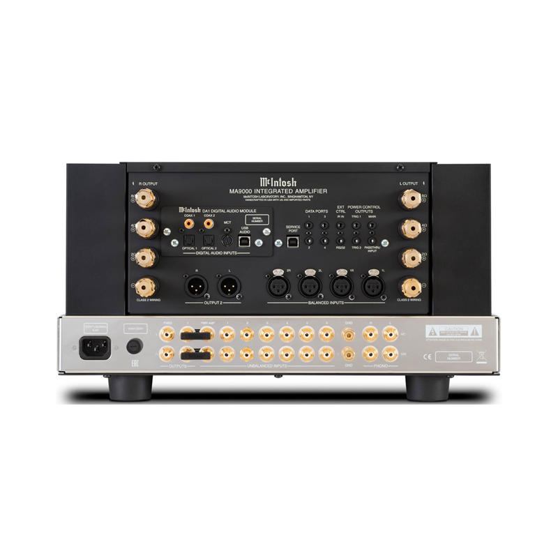 McIntosh MA9000 amplificador integrado 2 canales | 2x 300W a 8 ohmios | Entradas: 6x RCA, 2x XLR, 1x Phono MM variable, Phono MC variable, 2x Óptica digital, 2x Coaxial Dig, USB | Salidas: RCA variable y RCA fija, XLR variable, Auriculares | DAC 8-canales | HT PassThru