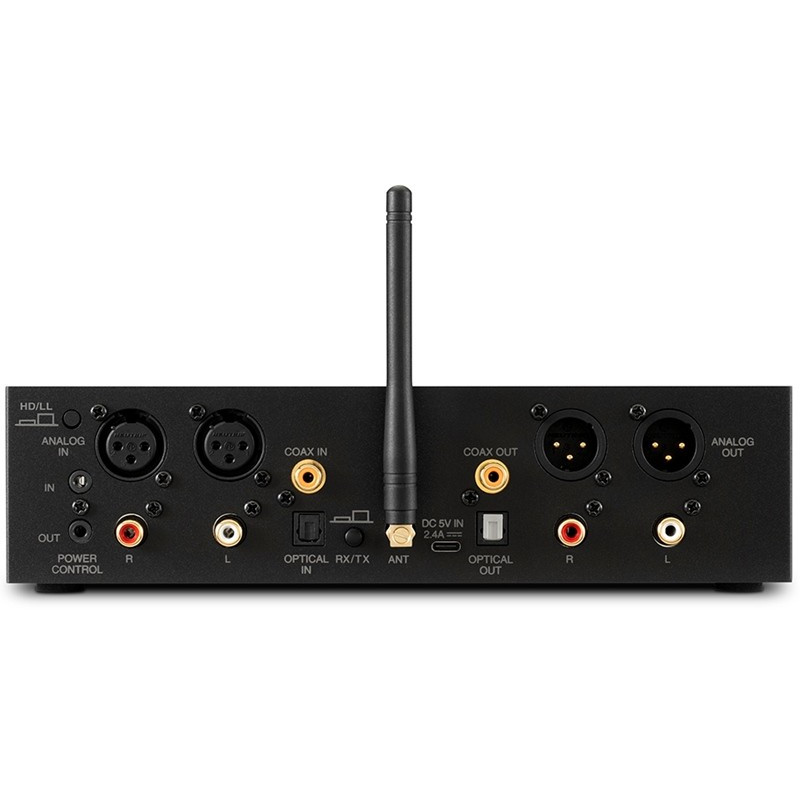 Una sofisticada solución destinada a los amantes del sonido absoluto que desean integrar las capacidades inherentes al streaming Bluetooth en conjuntos audiovisuaesl formados por electrónicas de cualquier época. Dotado de un diseño compacto y elegante a partes iguales, del MB25 hay que subrayar en primer lugar que no necesita aplicaciones de terceros para funcionar. Equipado con tecnología Bluetooth de Clase 1, su rango de transmisión de hasta 46 metros reforzado por una antena externa le permite exhibir unas prestaciones óptimas en la transmisión, así como también la recepción de contenidos de audio. Entre las diferencias más importantes con respecto a su predecesor, el popular MB20, hay que destacar un panel frontal de vidrio iluminado que aporta información sobre la velocidad de transferencia binaria de las formas de onda entrantes y los tipos de conexión. Finalmente, se ha añadido la útil funcionalidad de gestión de la puesta en marcha para sincronizar el encendido y apagado con el del resto del sistema. Extremadamente versátil, el MB25 incluye un extenso repertorio de entradas y salidas analógicas (balanceadas y no balanceadas) y digitales (coaxial y óptica) para facilitar su conexión a nuedtro conjunto. Asimismo, utiliza la conectividad Bluetooth 5.0 con soporte tanto para el estándar AAC con alta velocidad de transferencia binaria como el Qualcomm aptX HD para reproducción de audio en alta resolución. También es compatible con la codificación Qualcomm aptX de Baja Latencia para mejorar la velocidad de transmisión y optimizar la sincronización entre sonido e imagen. Por otro lado, la presencia de un convertidor D/A de grado audiófilo con tecnología de 32 bits en el modo receptor y un convertidor A/D de muy alto nivel en el modo transmisor asegura el mantenimiento de la calidad sonora y la integridad de la señal.