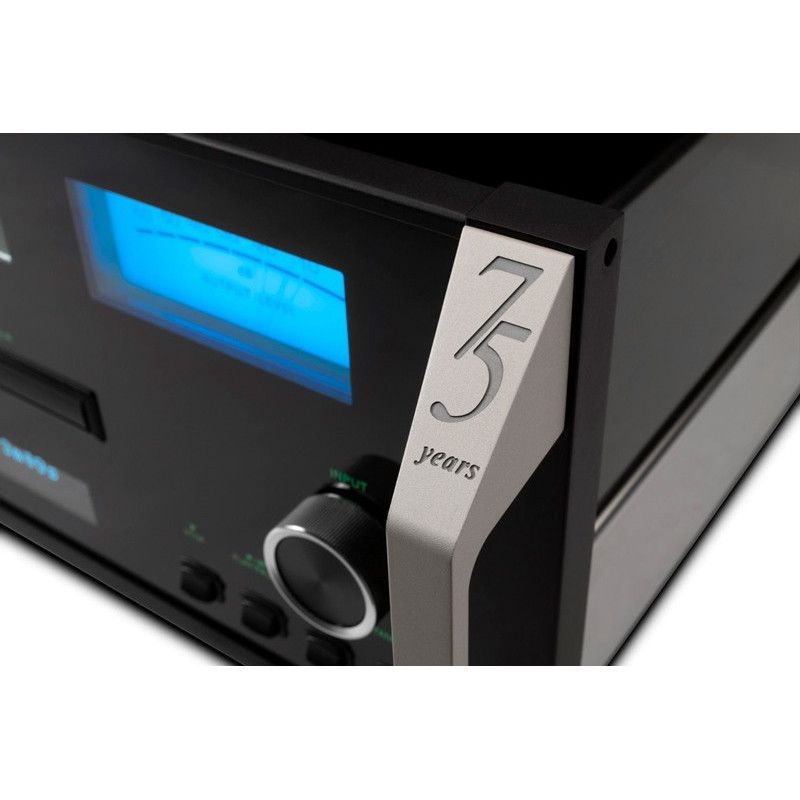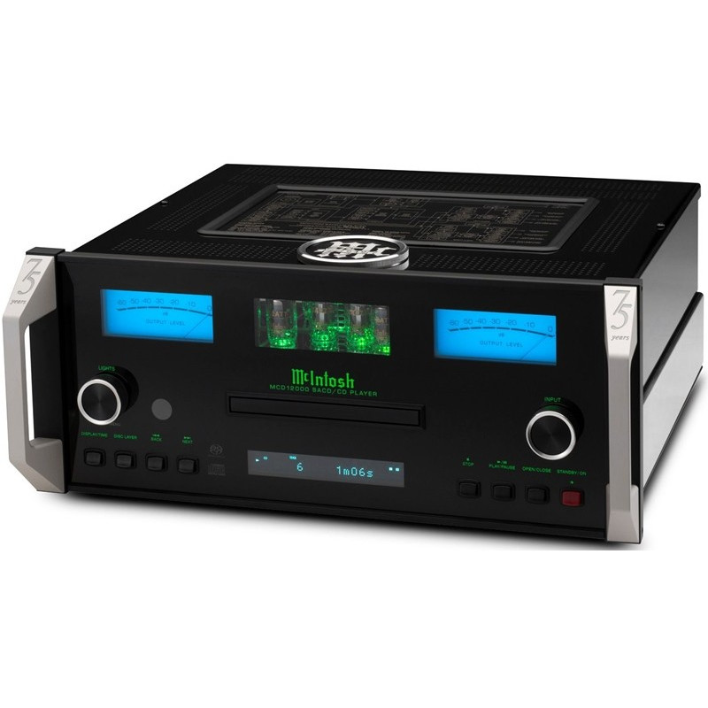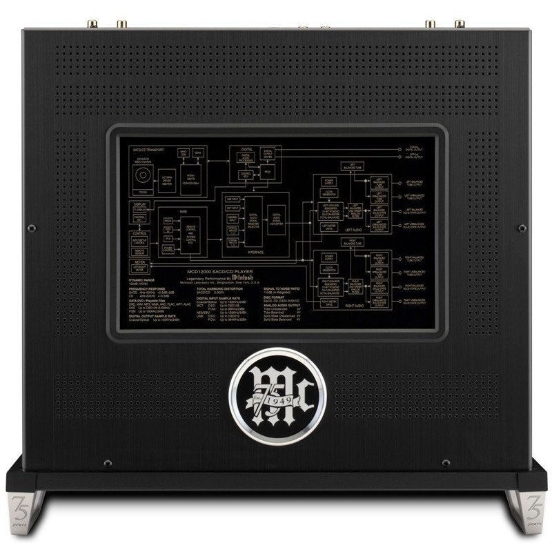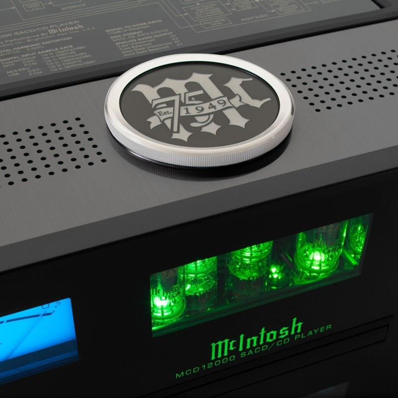 McIntosh MCD12000 75 Aniversario Reproductor SACD, CD, CD-R/RW y DVD-R con DAC 8 canales, 32-bit PCM/DSD SABRE PRO ES9038PRO | Entradas: 2x digital óptica, 2x digital coaxial, USB-B, AES/EBU, MCT. Salidas: RCA, XLR válvulas y estado sólido, coaxial digital y óptica. Formatos: AAC, AIFF, ALAC, DSD (hasta DSD512), FLAC, MP3, WAV y WMA. Roon