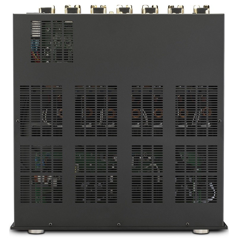 El MHT300 también puede crecer con su teatro, ya que sus módulos amplificadores individuales se pueden configurar de muchas maneras para adaptarse a su configuración específica de altavoces. Si algún día su cine en casa se expande más allá de los siete canales, se pueden conectar amplificadores externos adicionales al MHT300 para alimentarlos a través de las salidas de audio de Altura 1 y Altura 2. Un amplificador externo, como el amplificador de 4 canales McIntosh MI254, se conectaría a estas salidas para controlar estos altavoces adicionales. Esto convertiría efectivamente al MHT300 en un AVR de 7.2.4 canales.