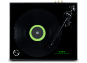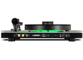 El plato exterior, de color negro y accionado por correa, está fabricado con un polioximetileno (POM) especial equilibrado dinámicamente y tiene un grosor de más de 1". Este peso ayuda a resistir y absorber las vibraciones externas que pueden causar ruido durante la reproducción; su gran masa también proporciona la acción de volante perfecta para una velocidad de reproducción estable. El plato interior está hecho de aluminio fresado con precisión CNC. Los platos giran sobre un eje de acero pulido y templado en un casquillo de bronce sinterizado. El motor de corriente continua es accionado por una fuente de alimentación externa estabilizada en tensión y está completamente desacoplado del chasis, aislando sus discos de cualquier interferencia mecánica. Su robusto zócalo tiene una base de madera optimizada para la resonancia y altamente comprimida con un acabado de laca negra, mientras que las placas acrílicas superior e intermedia ayudan a absorber las vibraciones no deseadas.