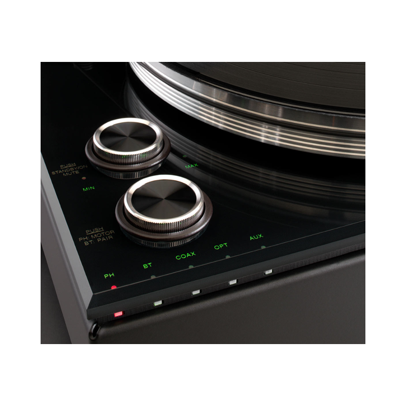 McIntosh MTI100 Tocadiscos y Amplificador Integrado | Cápsula MM | Brazo de aluminio mecanizado | Cambio 33/45 rpm manual | Platter de aluminio | 2x 50W | Entradas: RCA, digital óptica, digital coaxial | Salidas: subwoofer y auriculares | Bluetooth 4.2