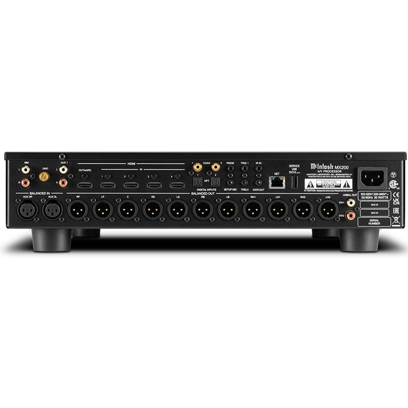 McIntosh MX200 Preamplificador/procesador de A/V de referencia | Capacidad de procesado de 11.2 canales | Ejecutado con componentes de la máxima calidad | Salidas analógicas balanceadas (XLR) para 11 canales | Compatible Dolby Atmos Height Virtualization Technology | Sección de vídeo compatible con señales 8K/60 Hz y 4K/120 Hz | Compatible HDR10, HDR10+, Hybrid Log Gamma (HLG) y Dolby Vision | 4 entradas y 1 salida HDMI compatibles HDCP 2.3