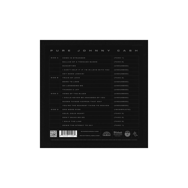McIntosh Sessions Volume 2: Pure Johnny Cash Álbum colaboración de 18 temas entre Sun Records y McIntosh | Cuidada selección de los primeros tiempos de Johnny Cash en Sun Records, y cuidada remasterización de las cintas analógicas originales | Presentado en 2 vinilos premium de 180 gramos a 45 rpm | Control individual de cada ejemplar para garantizar un sonido excepcional