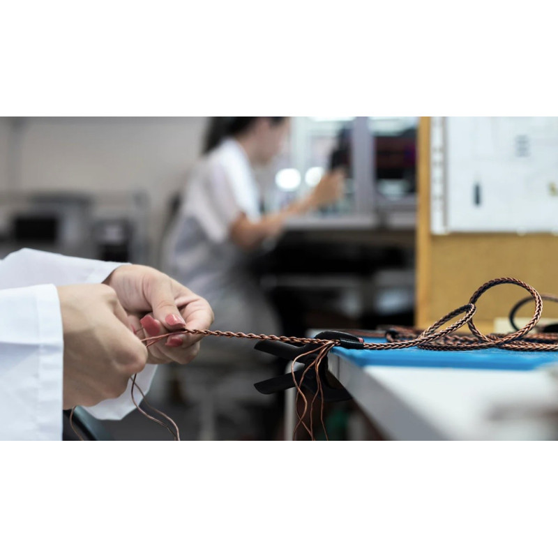 Trenzados a mano desde cero por nuestro equipo en Rumanía, los CABLES COPPER PREMIUM están pensados para enfatizar el rendimiento sonoro de sus auriculares, creando una experiencia musical con mucho cuerpo. Los graves son más intensos, la imagen y la separación mejoran y las voces destacan. El cobre PCUHD, un conductor de última generación para la fabricación de cables para audiófilos, ofrece una mayor flexibilidad y es muy resistente a los daños.