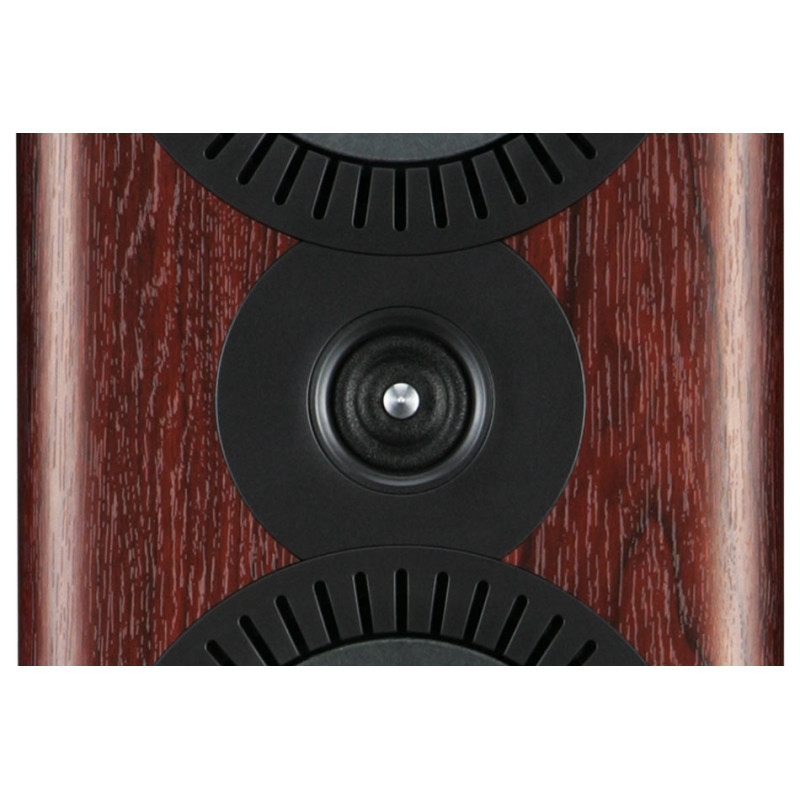 Los tornillos envolventes y de fijación de la unidad motriz están inteligentemente ocultos detrás de este exclusivo diseño de acabado que le da un aspecto altamente técnico a la cara frontal del altavoz.