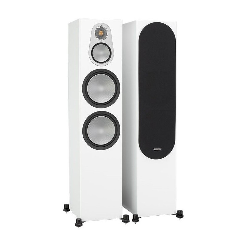 Monitor Audio Silver 500 altavoces. Los altavoces Silver 500 de Monitor Audio cuentan con un par de poderosos y largos woofers de 8 pulgadas C-CAM en cada armario, ofreciendo un bajo impactante hasta una vibración de tierra de 30 Hz junto a agudos agudos y cautivadores de gama media. Con esta obra maestra, le garantizamos que no necesitará un sub adicional para entregar las pistas de música más exigentes al máximo.