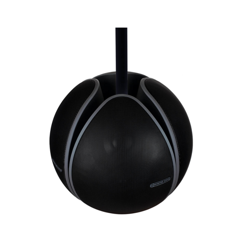 El soporte V-CLUSTER agrupa cuatro cajas acústicas V240-LV en una impactante configuración para sonido de 360 grados. La impresionante esfera de cajas acústicas se fija al soporte dejándose caer desde su poste montado en techo.